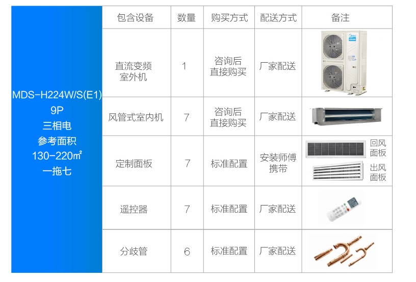 美的 一拖七變頻一級能效 多聯風管機 9匹 家用中央空調 MDS-H224W/S(E1)